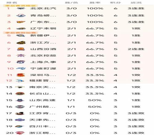 北京时间12月20日,昨晚CBA第三轮结束了最后两场比赛,广东97-94险胜广州,上海101-89江苏,我们一起看看最新积分榜变动!
